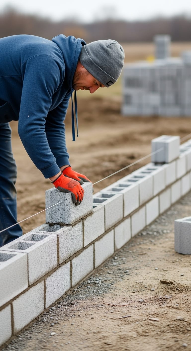Un maçon sérieux creuse une fouille suffisante (souvent 50–60 cm minimum, voire plus), met une semelle filante ferraillée, puis coule un béton adapté. Le premier rang de parpaings ou de pierre est posé au millimètre, sinon tout le mur suit de travers.